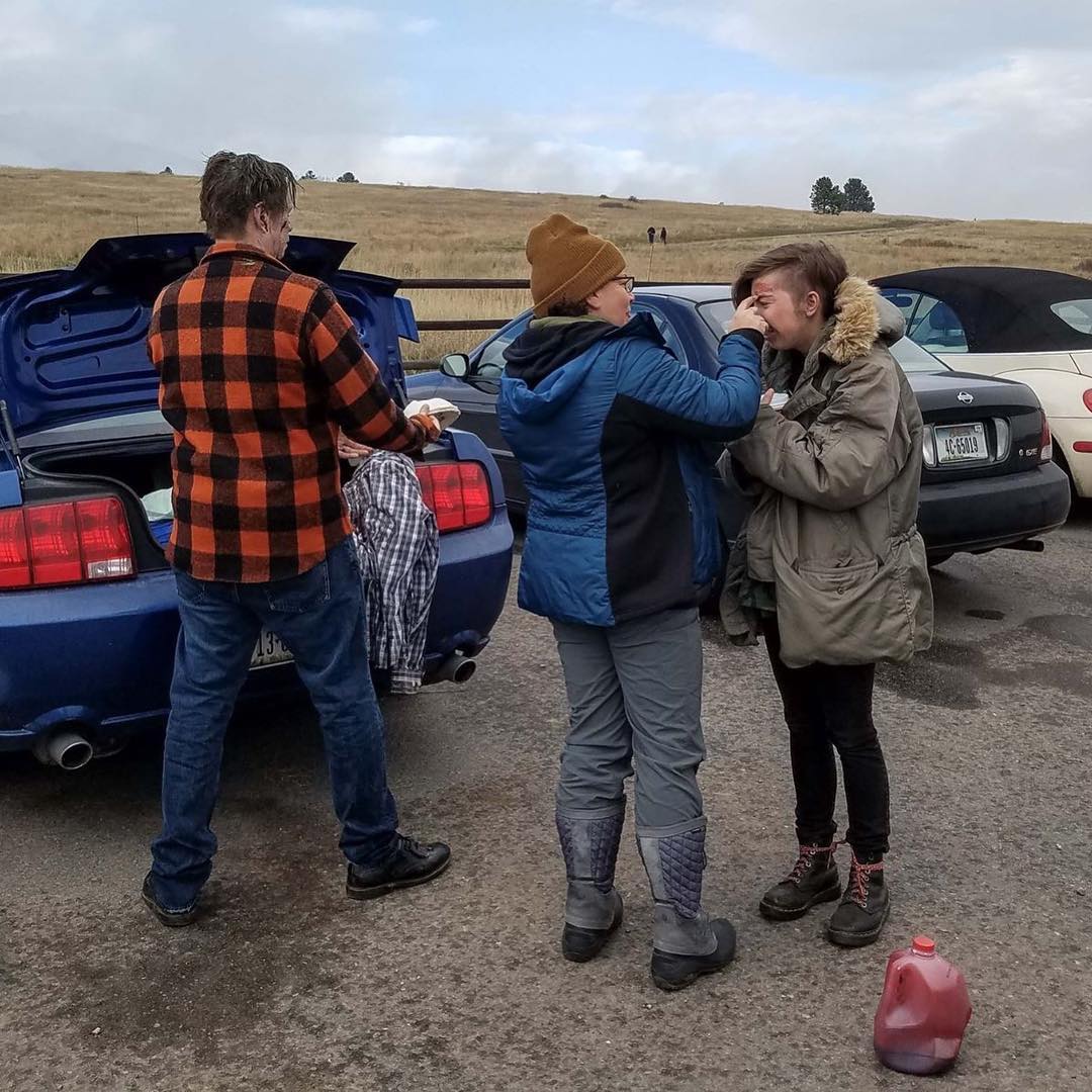 Fun memory on FB today! Freezing cold, making zombies in the parking lot by trails through the woods, wearing a ridiculous borrowed hat because I’m always forgetting mine. Pick up shot with a tiny crew. Can’t wait to get back on my feet and start making monsters again! #monstermakeup #monstermaker #fxmakeup #makeupeffects #workingmakeupartist