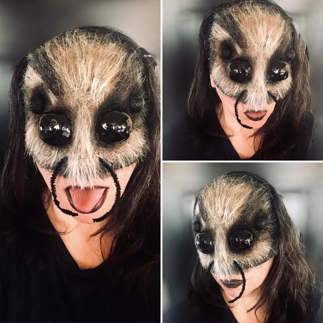 Still in process (more white hair added and mandibles will get more hair on them, etc) but pretty pleased so far with this spider mask! (It’s going to be part of a larger spider costume for a dancer performing in NY- can’t wait to see how it all comes together!) #hairlaying hairlaying #hairpunching #maskmaking #maskmakers #makeupfx