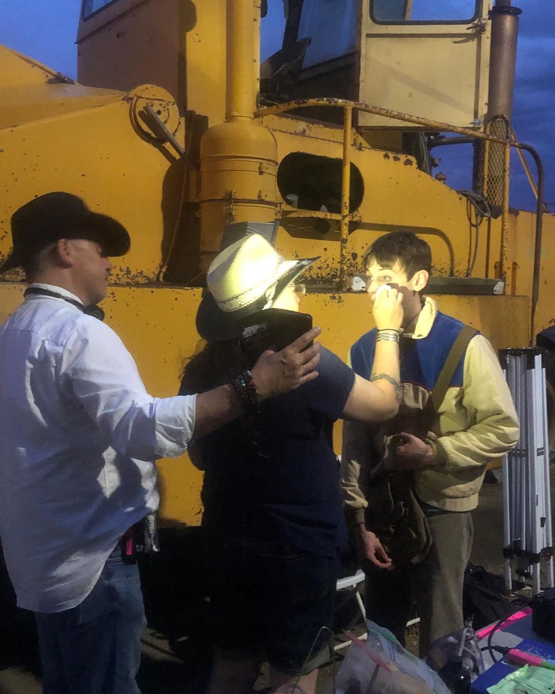 With a helpful director holding the light, who needs a trailer? #makeuponset #montanafilm #montanafilmoffice #makeupfx @finetravis @uleschles