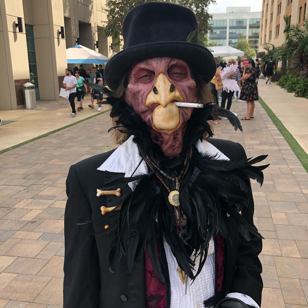 Jive, the turkey vulture witch doctor, taking a break from the festivities at Son of Monsterpalooza. Don’t you dare tell him it’s bad for his health 😉 (no he’s not really smoking 😆) #melproductsusa #ebaperformancemakeup #bdelliumtoolssfx #bennyecosmetics #screamteamprosthetics #vultureculture #sonofmonsterpalooza2019 model: @donteschnerofficial assisted by @pipriddle concept and makeup by @ninaalviarmakeup