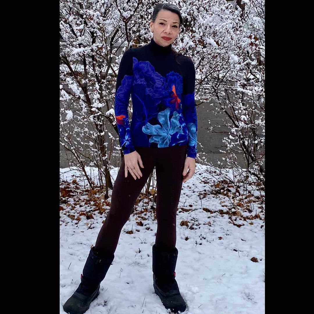 These made-to-order pieces from @thekit (hello sustainable fashion!) are stunning, interesting, comfortable statements. Love this Indigo Iris turtleneck! It’s lightweight and silky, and wow what a gorgeous design! As the company says: You have enough basics. #sustainablefashion #statementpieces #beboldbeyou #lesswaste #maturebeauty 📸 @donteschnerofficial