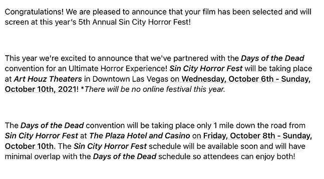 Wooo hoo!! NAILS - Short Horror Film is going to Vegas, baby!! Thank you @sincityhorrorfest !! #womeninhorror #makeupfx #femaledirector #horrorfilmfestival