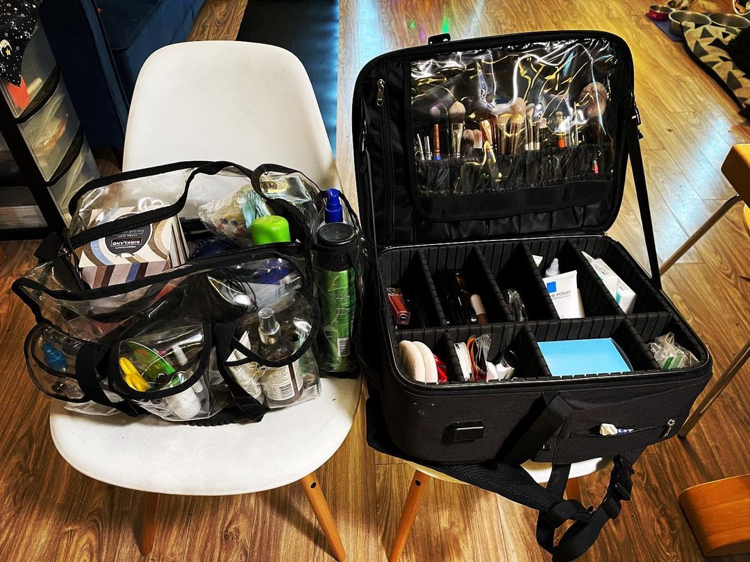 Basic makeup and hair kits packed for two back to back commercial/print shoots this week! Snowing just in time for me to drive all over the state 😂 #makeupforfilm #makeupforphoto #travelingmakeupartist #herewegoagain