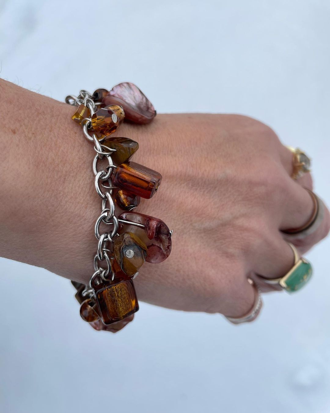 Did I mention @savannahhoffmandesigns also makes jewelry in house? Felicia is brilliant. #handmadejewelry #womenownedsmallbusiness #bracelets #braceletstack #hamsa #starjewelry