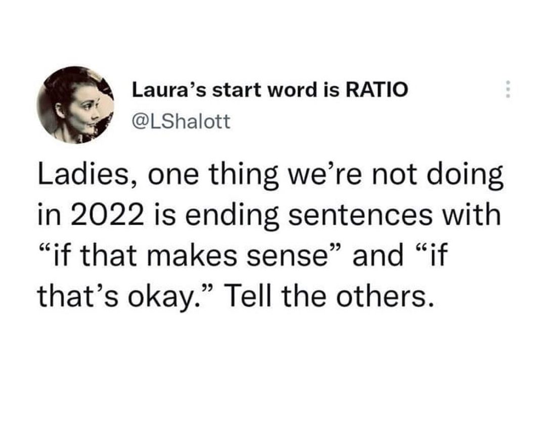 Got it?? Oh and also let's take out "just" - "I just want to suggest". . . NOPE. . . "I suggest." And stop saying sorry for every damn thing. We clear? #speakupspeakout #powerfulwomen #takeupspace