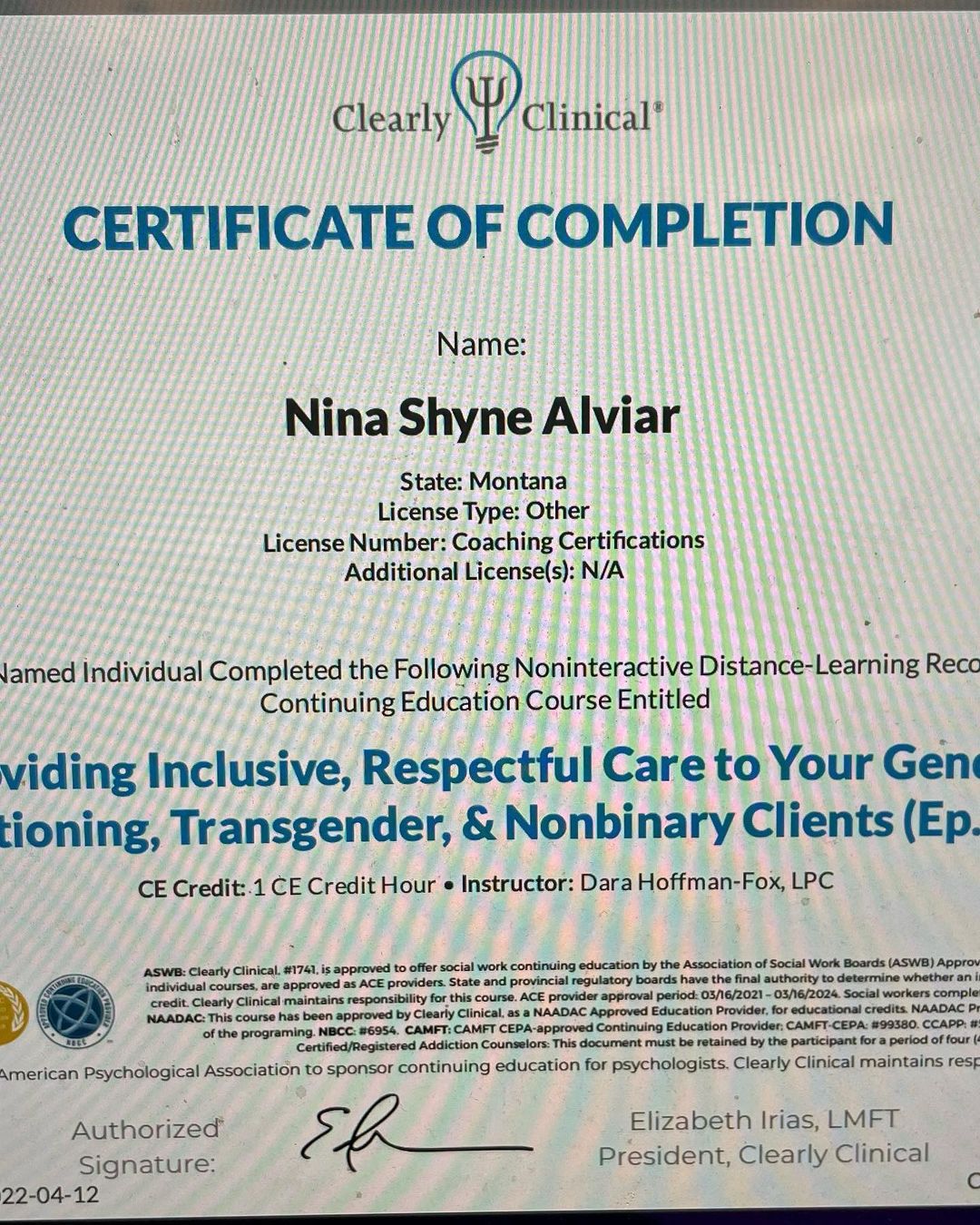 Neuroplasticity, Positive cognitive behavioral therapy, traditional cognitive behavioral therapy, habit rewiring, resiliency, mindfulness practices, health and wellness, and more, and now these. (Certification in disordered eating on the way! And energy work too, for those who like the woo!)