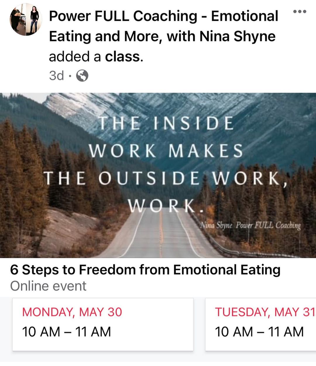 It's a private messenger room, and we will go over all the science, the steps, and you will have exercises to do in real time (and on your own) to empower you to break free from Emotional Eating!