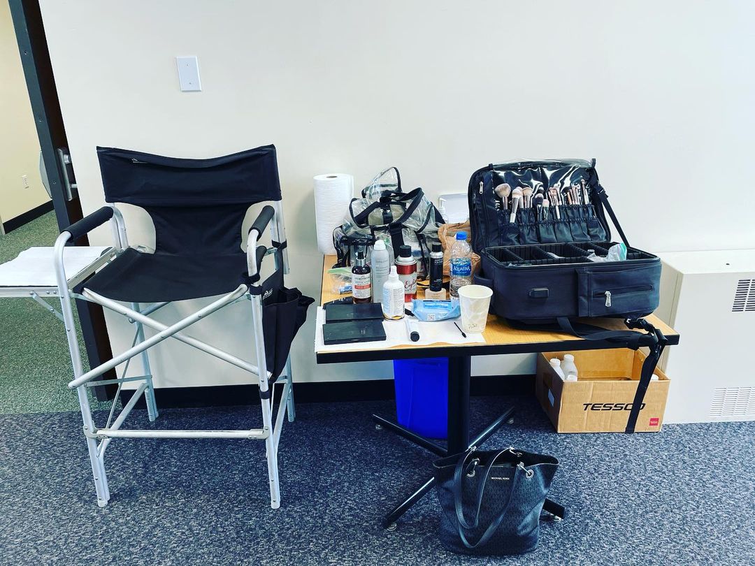 Back at it (a fun little corporate shoot, Don is on sound, and only about 10 min from home. Pretty sweet little gig!) #promakeupartist #corporateshoot #gratefulforgigs