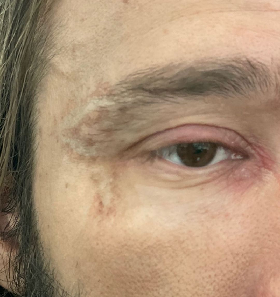 When your actor comes in with an eye injury that’s hard to cover, make it part of the character by adding scarring. Makeup by me, no prosthetic just EBA aa palettes. #3dmakeupeffects #makeupfxartist #makeupforfilmandtelevision #fxmakeup #injurymakeup @ebaperformancemakeup