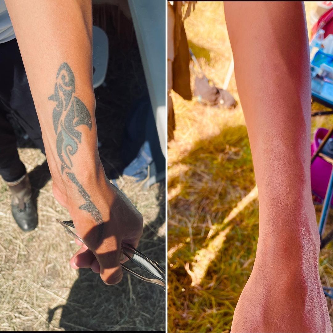 Loving my new quick tattoo cover method of first applying skin illustrator coral alcohol color, and then applying Jordane tattoo cover cream on top. Took about 5 min.