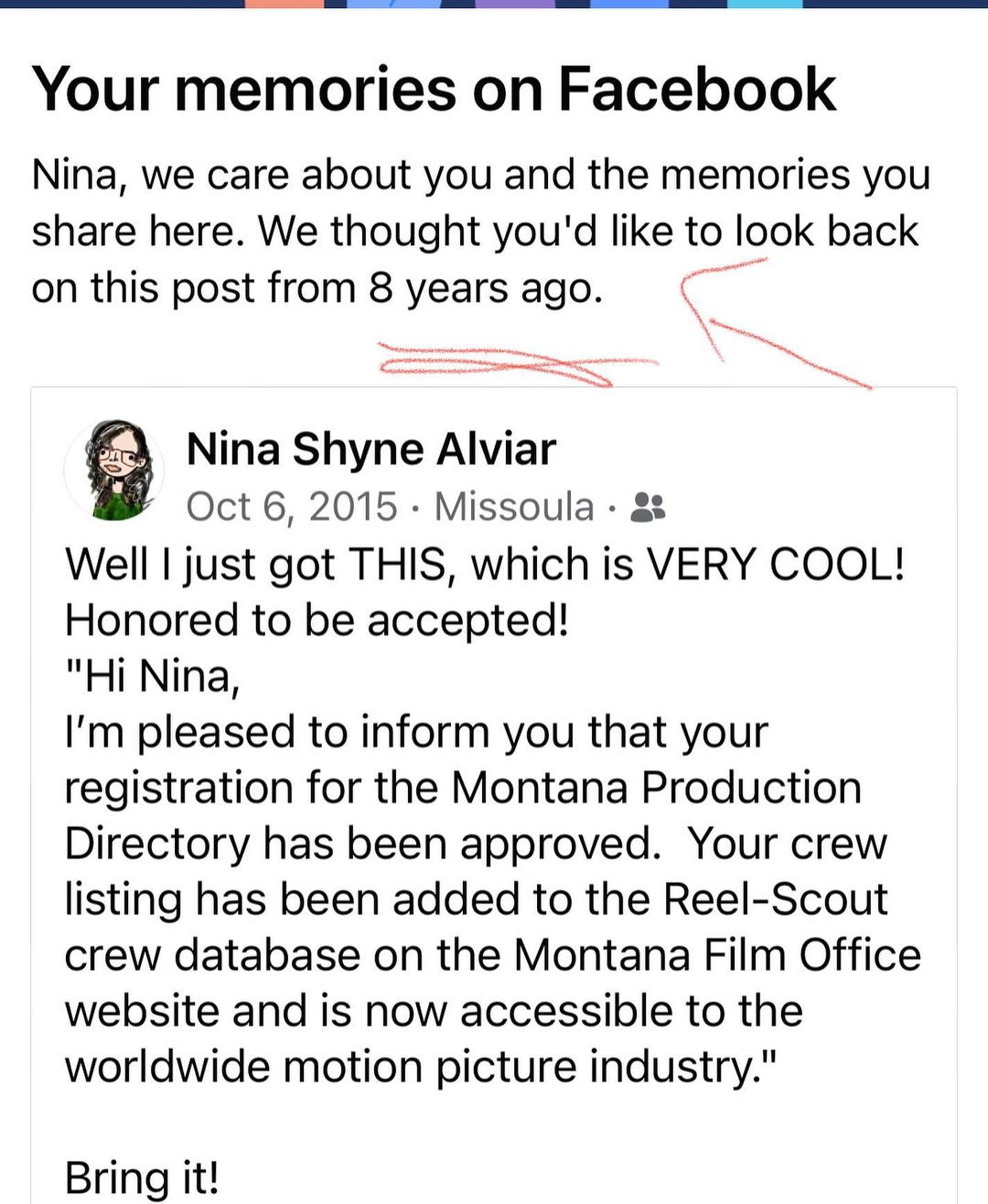 And I will continue to be good film family and bring others onto projects and help lift the industry up for all of us.