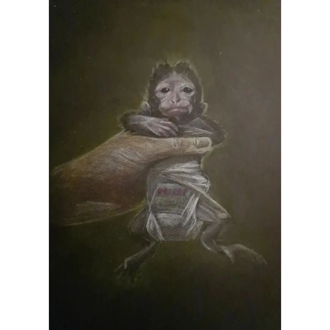 This drawing is made after a video of a newborn macaque monkey. I assume the title says enough, but I will give some 'highlights' underneath. Don't read when you're triggered by violence against animals.