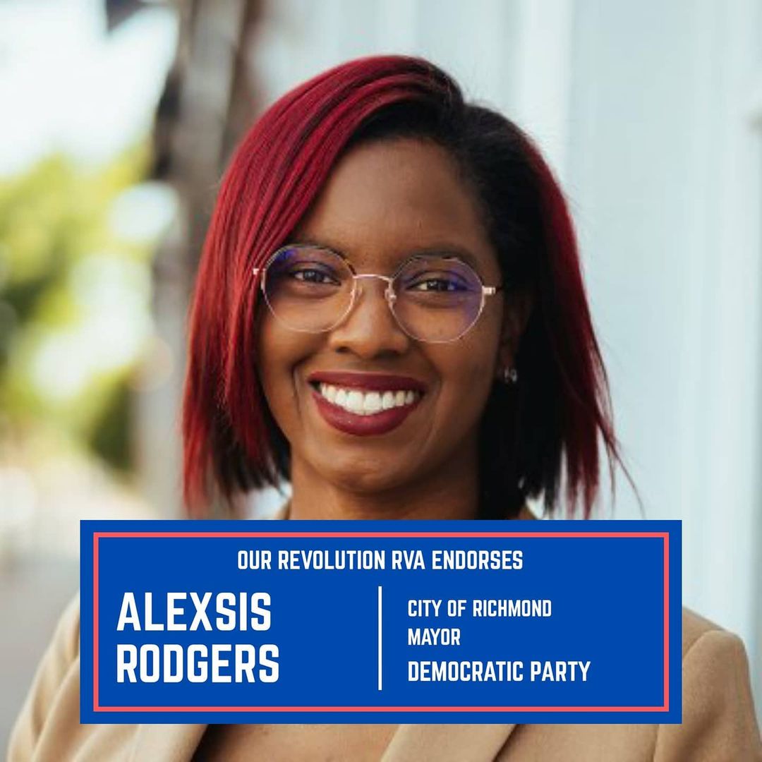 Our Revolution RVA is excited to announce our endorsement of @alexsisrodgers for mayor of Richmond, VA! Alexsis has a bold platform that addresses the real issues facing Richmonders such as defunding police, remove redlining, take on environmental racism, deplatform Dominion Energy, extensive public transit, among other items. To check out Alexsis' vision and donate to her website go to: https://www.alexsisrodgers.com/