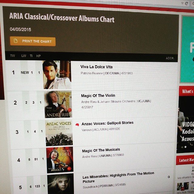 #mammamia I am #overwhelmed and #shocked I am #1 on #australia #ariacharts #crossover #newalbum #vivaladolcevita #ilmondodipatrizio #patriziobuanne #neapolitan #andrerieu #mondobuanne #buanne #buanneofficial #patrizioofficial #mondobuanneofficial