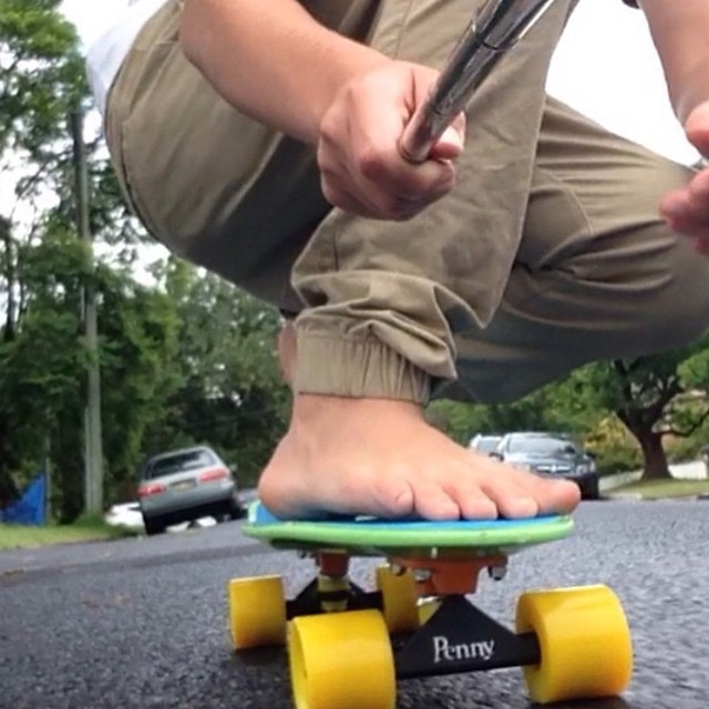 Do you push #barefoot in Summer? Thanks @nick._.russell for showing off your new 27" #pennyskateboard