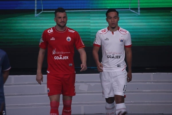 @markosimic_77 dan @gunawandwicahyo13 memperkenalkan jersey home dan away #Persija untuk #GojekTravelokaLiga1 🔴⚪ . #PersijaJakarta #PersijaSelamanya