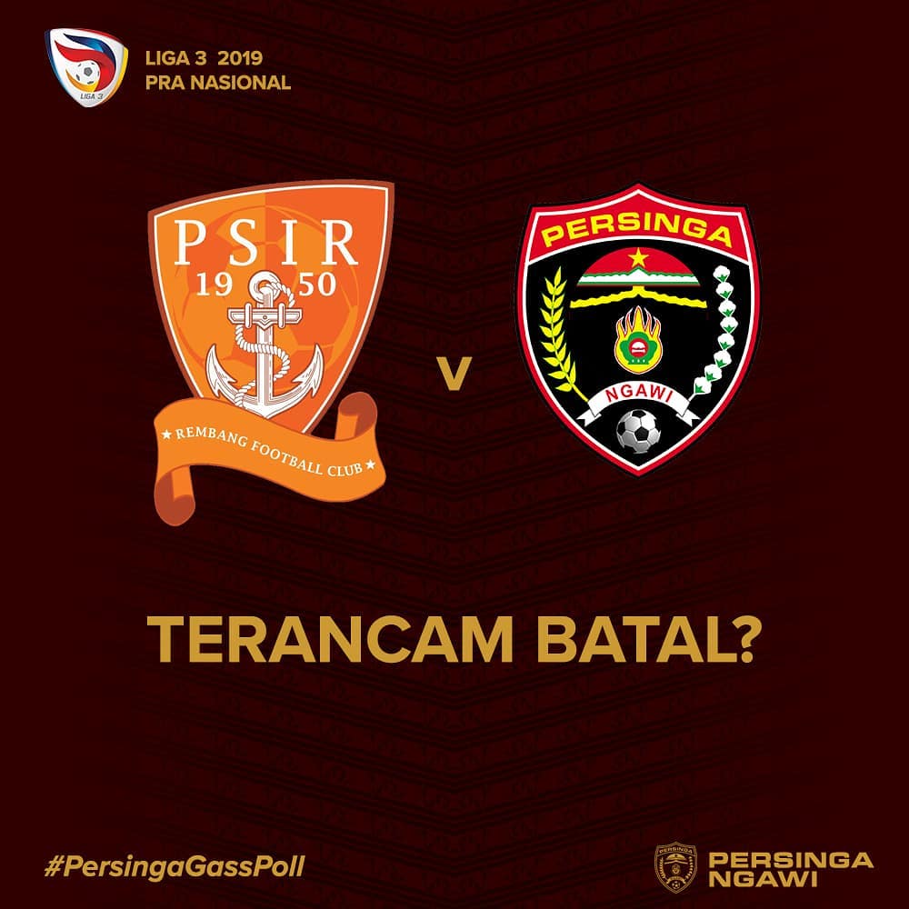[NewsFlash] Pertandingan pertama Persinga Ngawi di Liga 3 2019 melawan tuan rumah PSIR Rembang terancam batal. Pasalnya, saat Manajemen Persinga mencoba menghubungi pihak PSIR, tidak ada jawaban yang pasti. Untuk sementara tim Persinga menunda keberangkatan ke Rembang sambil menunggu keputusan resmi dari PSSI terkait pertandingan PSIR Rembang vs Persinga Ngawi.