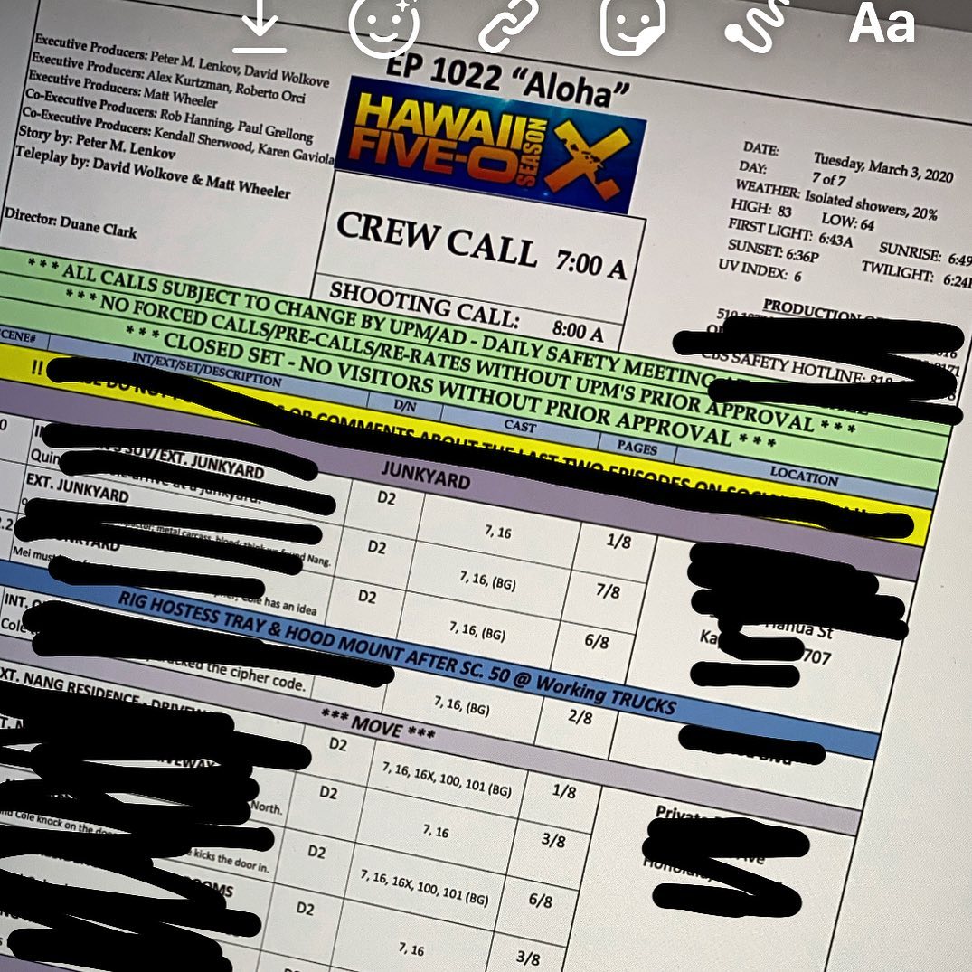 Last #H50 callsheet. Scotch & Cigar time. 10 years. You went way too fast. Aloha.