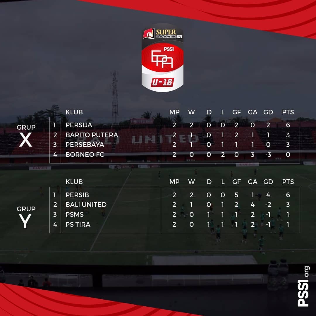 Inilah klasemen Grup X dan Grup Y Babak 8 Besar Super Soccer TV Elite Pro Academy Liga 1 U16 2018.