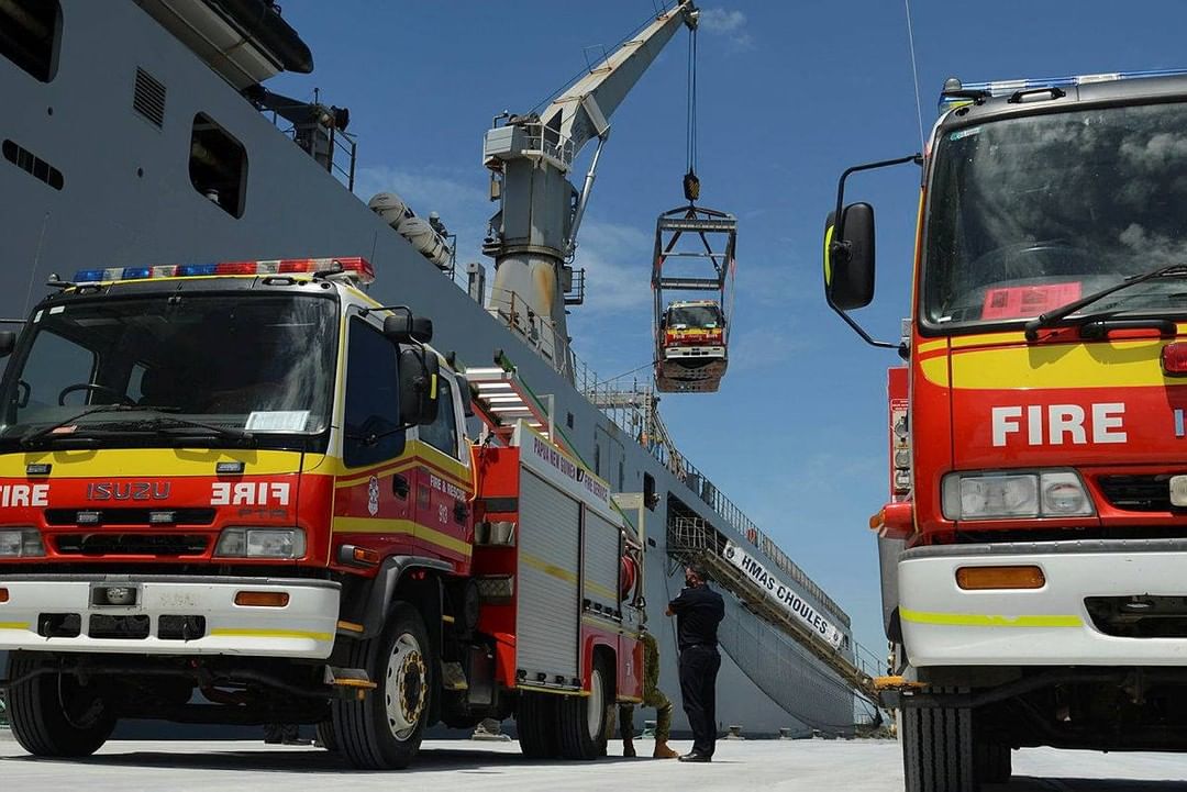 Five fire trucks are on the way to Papua New Guinea on board #HMASChoules after being donated by Queensland Fire and Emergency Services πππππ