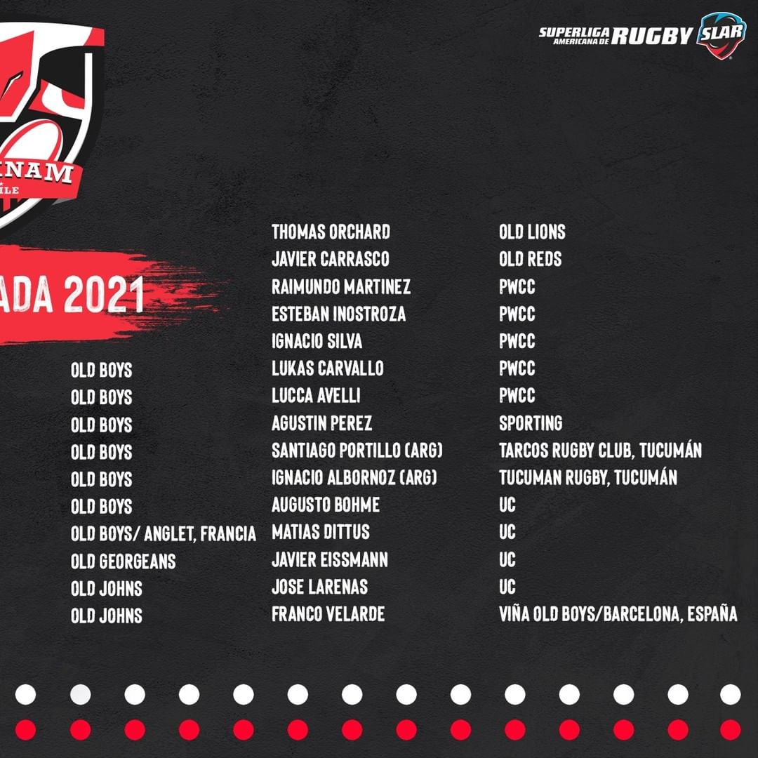 🔥 NÓMINA DE SELKNAM PARA PREPARAR LA @slarugby 2021 🔥 El staff técnico de Selknam liderado por Nicolás Bruzzone, dio a conocer el grupo de 40 jugadores que tendrá la franquicia chilena para comenzar a preparar su incursión en la segunda versión de la Superliga Americana de Rugby. 🔴⚫️