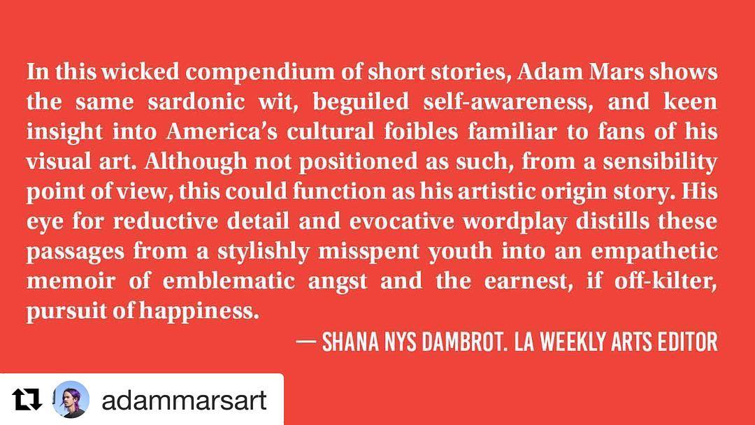 LA Weekly’s Arts Editor @shananys wrote an awesome review of my book. To read about my “empathetic memoir of emblematic angst and the earnest, if off-kilter, pursuit of happiness,” order a copy of Unreal for Real today! @unrealforrealofficial #laweekly #editor #unrealforreal #adammars