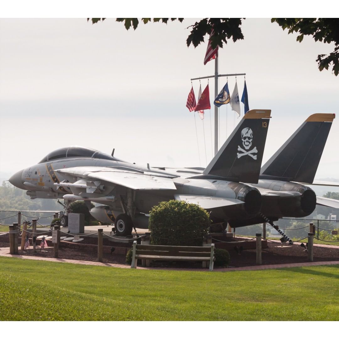 F-14A (Bu.No. 158617), painted in the markings of VF-84 or VF-103 ("Jolly Roger"), displayed outside a VFW post in Whitehall, PA, on a beautiful hilltop overlooking the Lehigh Valley. #avgeek