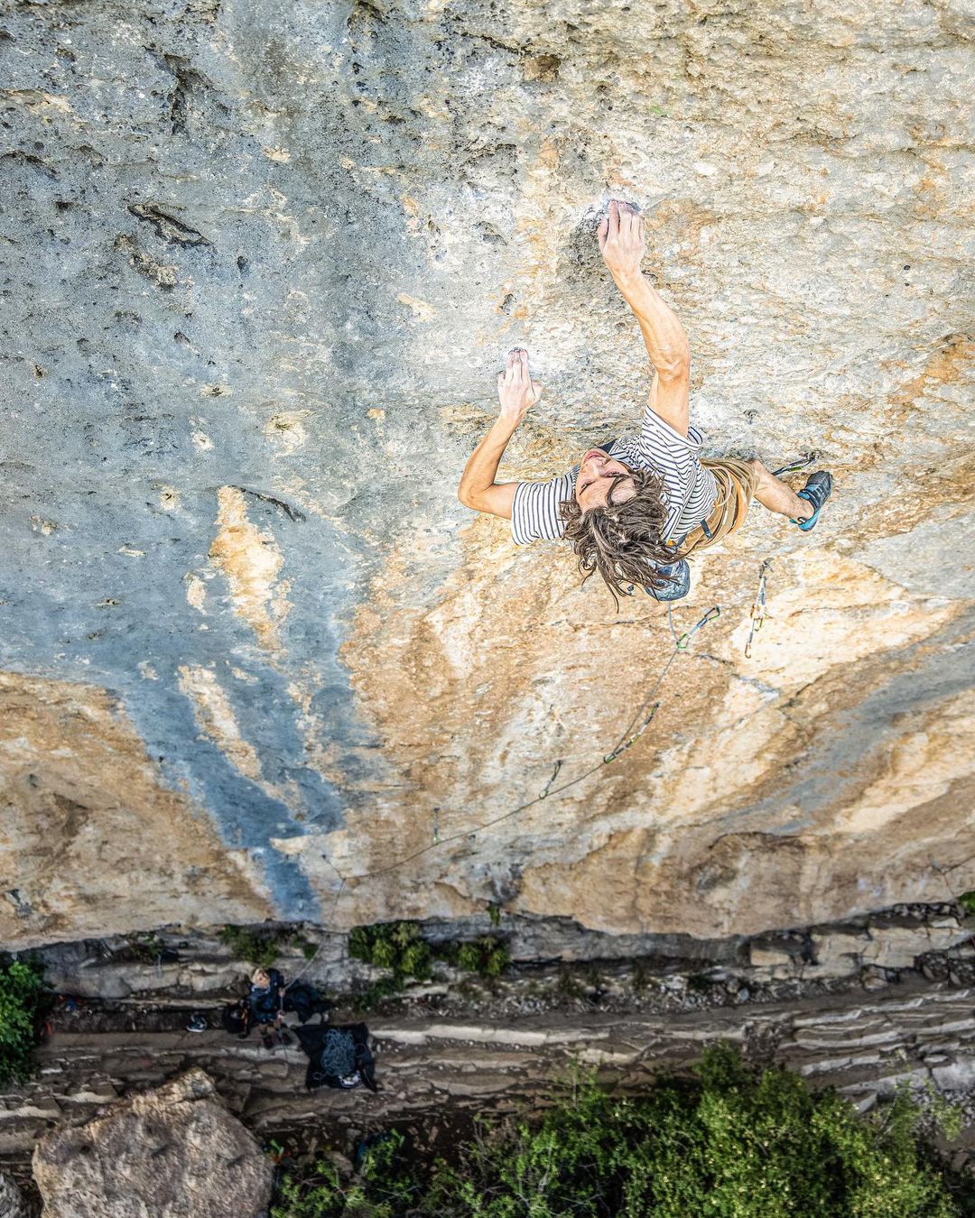 I sent Bibliographie! Easily the hardest battle I’ve waged with myself. I’ve never been so obsessed. I woke up thinking about the route. I fell asleep thinking about the route. It was nonstop. I was lucky to get through the middle crux pretty quick but proceeded to pump off the final boulder 12 or something times. Every time I was so blown I needed a rest day, so essentially I was getting one try every two days. It felt like I was resting more than climbing. I spent a lot of time questioning why I was putting myself through it. I knew I could train for it, come back another year with the right fitness and a fresher mind and probably have an easier time at it. In the end I realized I needed to see this process through just as much as I needed to send, I’m glad I did! It taught me so much about the process. I spend a lot of time trying to make things happen, but sometimes you have to let things happen too. Thanks for the pic, hanging and documenting @neilson.ben.