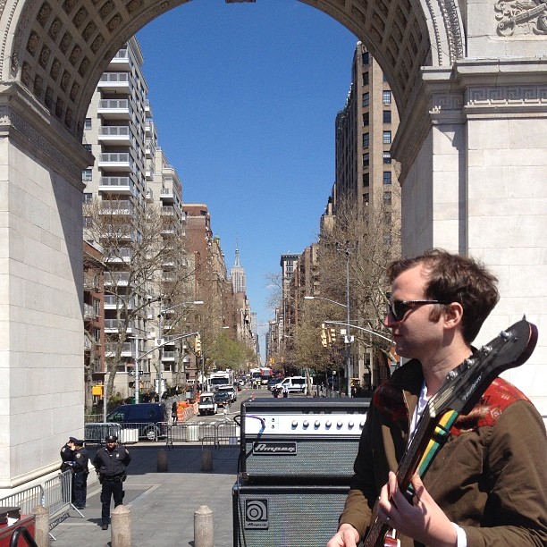 Sound checking for Vampire Weekend/Dirty Projectors set at the Bernie Sanders rally tonight in Washington Square. NYC- come thru!