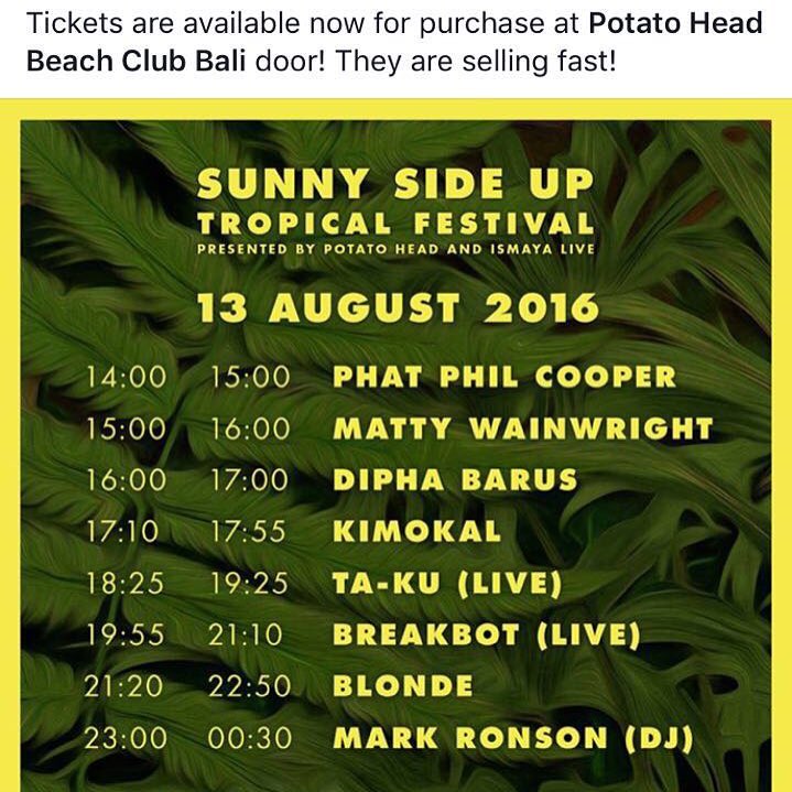 Tickets are available now for purchase at @potatoheadbali door! They are selling fast! #sunnysideupfest #bali