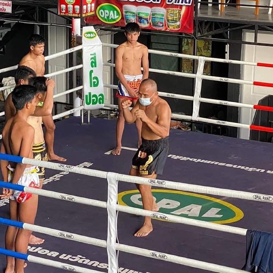 muay mat legend, samransak muangsurin aka “the iron fist” passing on his knowledge to the fighters at siopal camp #muaythai #thaiboxing #มวยไทย #มวย