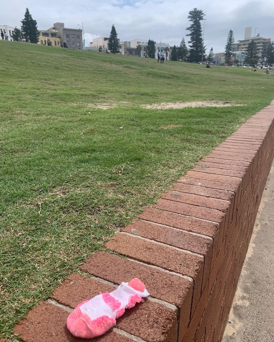 Kids sock, washed ashore. Lost ashore. Bondi Beach. New South Wales. Hanx.
