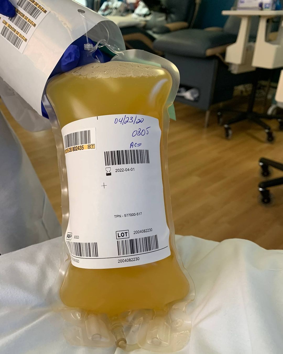 Here’s last week's bag of plasma. Such a bag! After the paperwork, it’s as easy as taking a nap. Thanks @arimoin and UCLA. Hanx