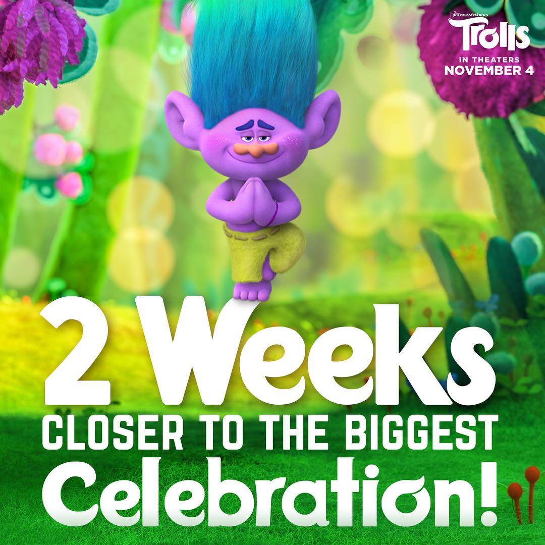 In 2 weeks, the party gets started! #DreamWorksTrolls in theaters November 4th!