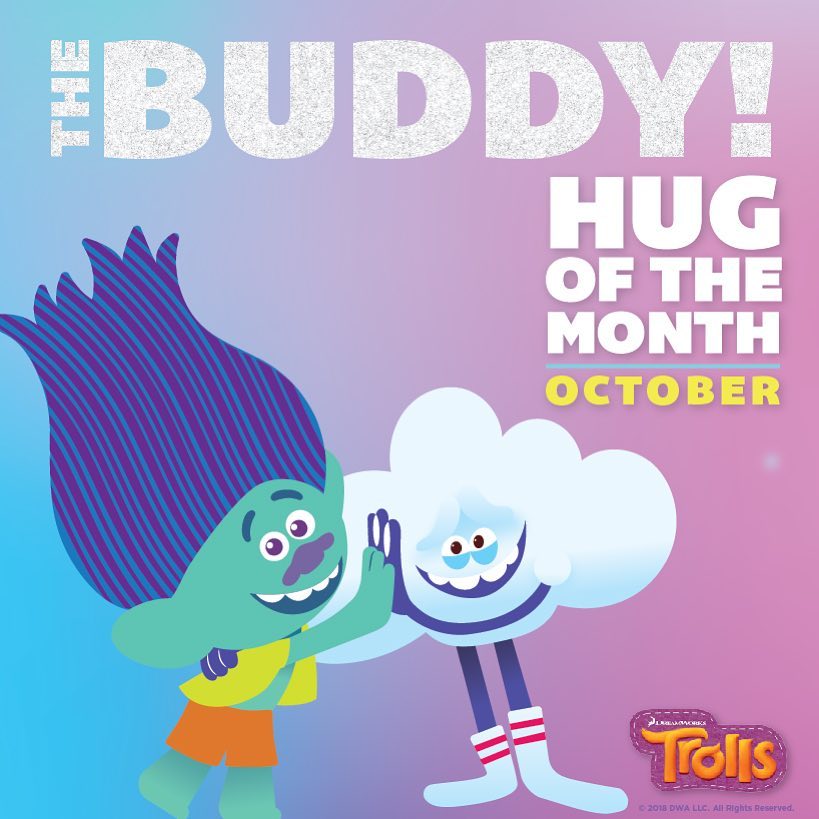 October’s Hug of the Month is the Buddy- where two people high five and THEN hug! #DreamworksTrolls