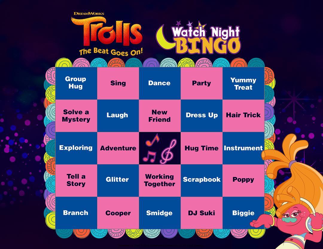 Play along with this Bingo game as you watch the new season of Trolls: The Beat Goes On! Now streaming on @Netflix.