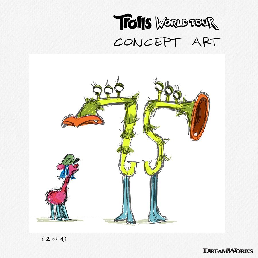 Visual Development Artist, Jesse Aclin, creates eye-catching concept art featuring our jazzbirds (first and second images). Animation Supervisor Benjamin Willis (third image) fine-tunes a scene with everyone’s favorite Funk Troll, Cooper (@ronfunch). #TrollsWorldTour #TrollsArtTuesday #AnimationSupervisor