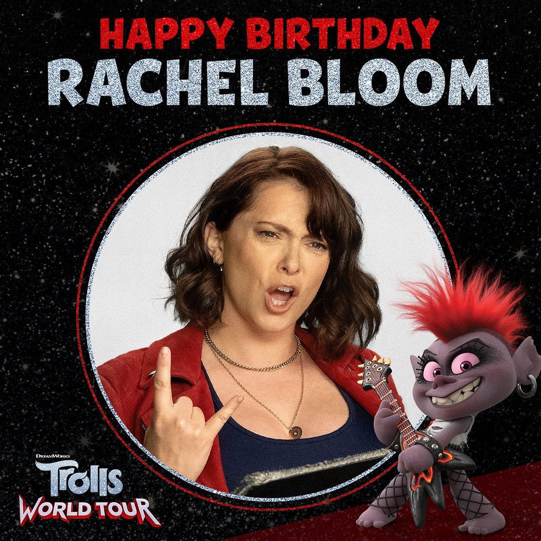 It’s Rachel Bloom’s birthday today! *insert epic guitar solo* Hear her as Barb, the Queen of the Rock Trolls, in #TrollsWorldTour April 10! 🎸