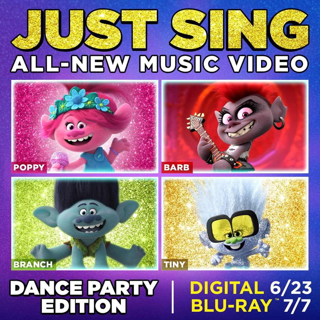 Poppy & Branch have reunited with their friends to “Just Sing” and dance ahead of the #TrollsWorldTour Dance Party Edition Movie on Digital 6/23.