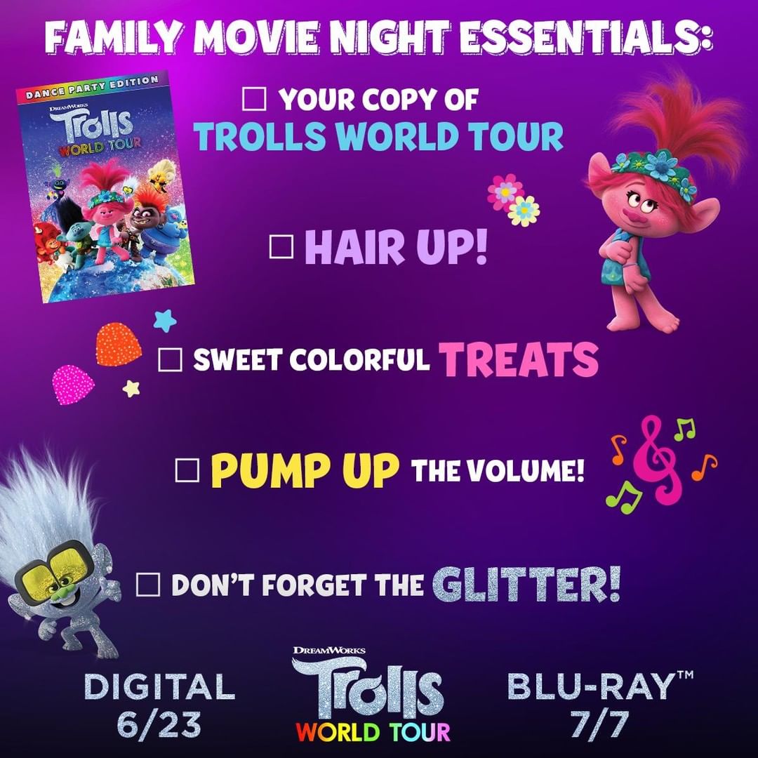 Hair's your guide for the ultimate family movie night! #TrollsDanceParty is yours to own on Digital 6/23, Blu-ray 7/7 - link in bio.