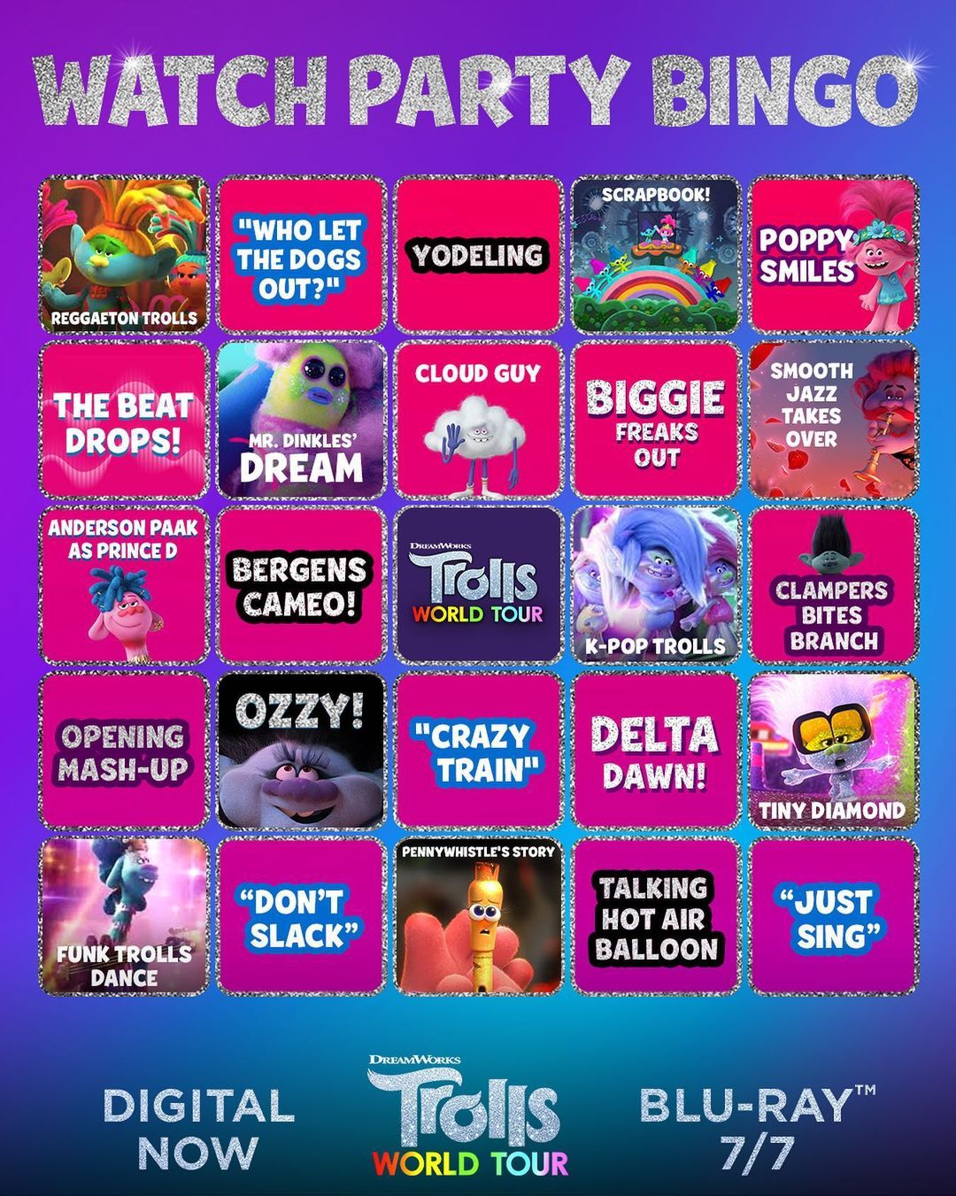 Trolls World Tour Dance Party Edition is NOW AVAILABLE on Digital! Watch and play bingo with this card - link in bio. #TrollsDanceParty.