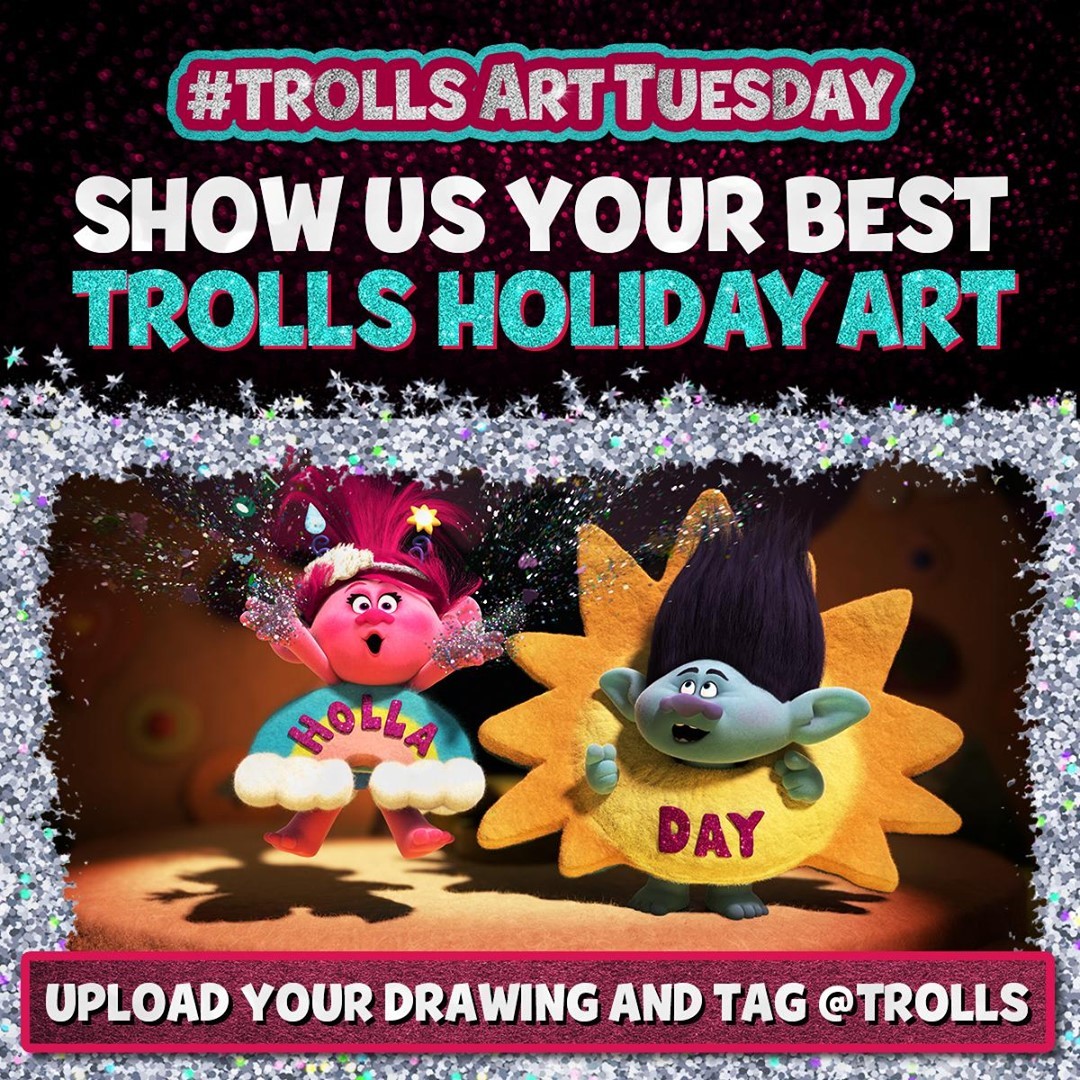 It’s #TrollsArtTuesday with a holiday twist! Share your best Trolls Holiday art and tag @Trolls. #DreamWorksTrolls