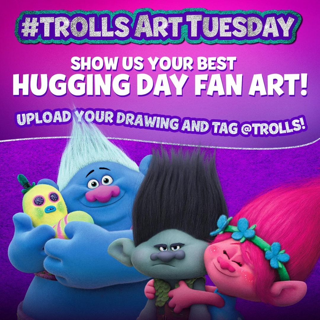 Show us your hugs! This #TrollsArtTuesday is all about getting ready for National Hugging Day! Draw your fave trolls hugging and tag @Trolls for a chance to be featured. #DreamWorksTrolls