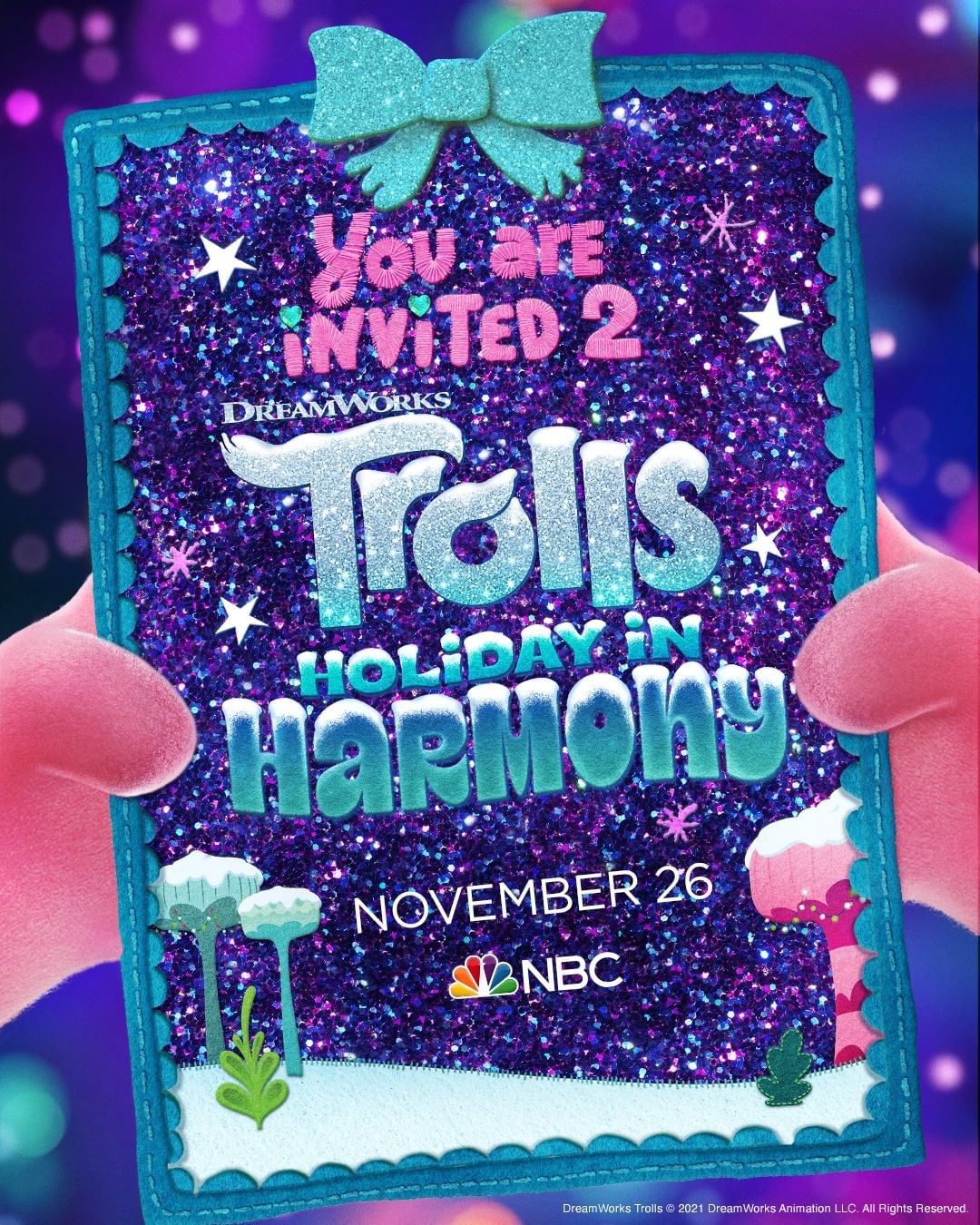 You are invited to join Poppy, Branch and the rest of us for Trolls Holiday in Harmony this FRIDAY at 9pm PT/ET on @nbc 🎁 #DreamWorksTrolls