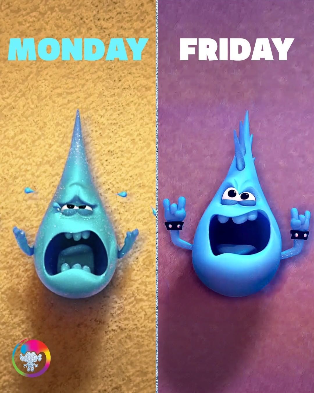 Post-weekend blues 😢 to weekend woos! 🤘 #DreamWorksTrolls