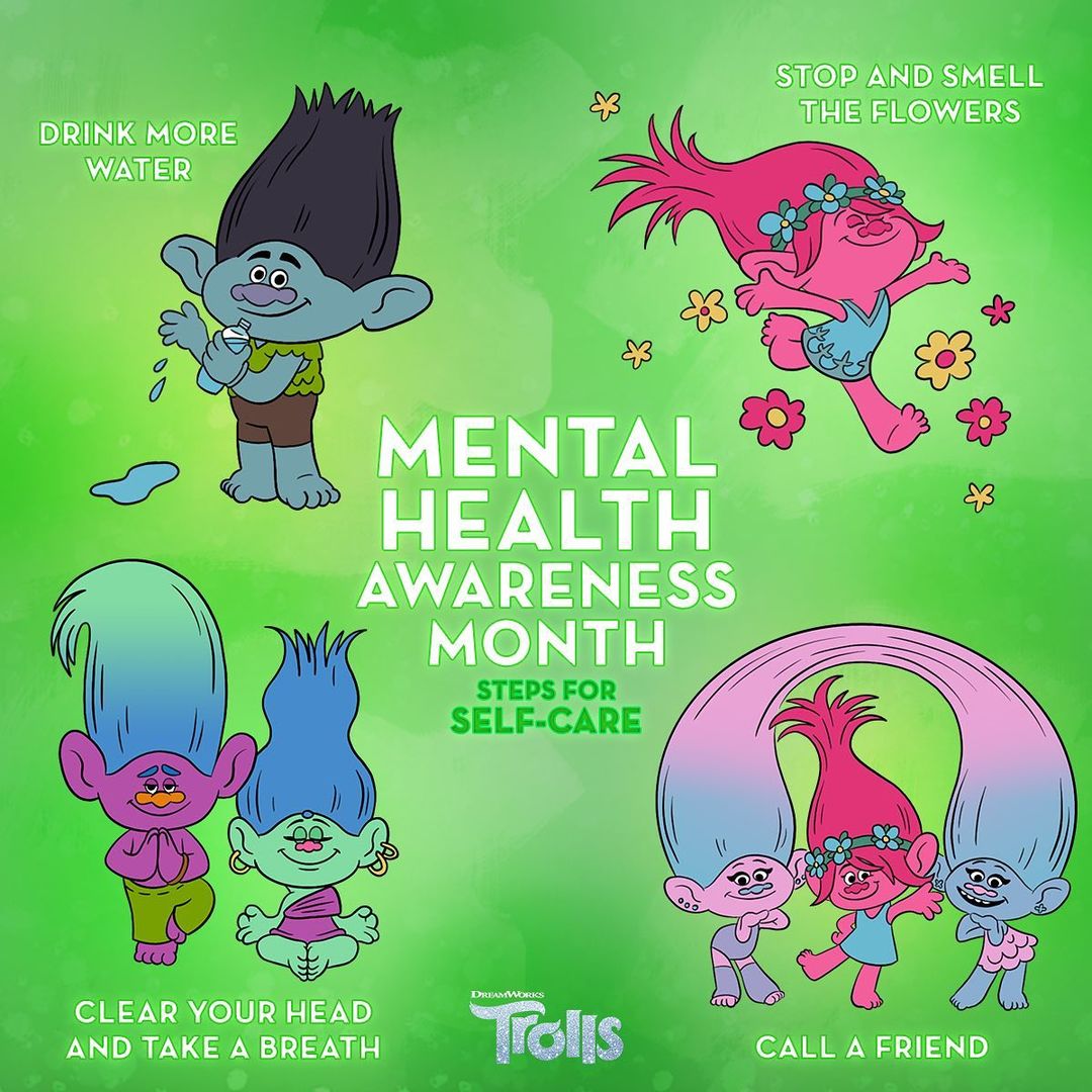 Take a breath, and take a break this #MentalHealthAwarenessMonth. 🤍 How are you showing yourself some love this month? #DreamWorksTrolls