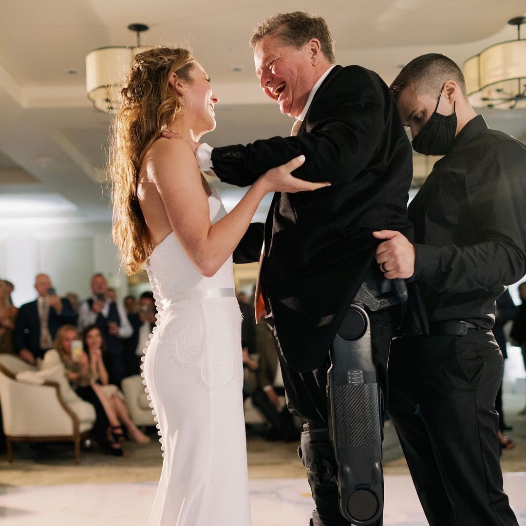 For the first time since 2000, when a crash paralyzed Sam Schmidt from the neck down, he danced with his daughter — with the aid of an exoskeleton.