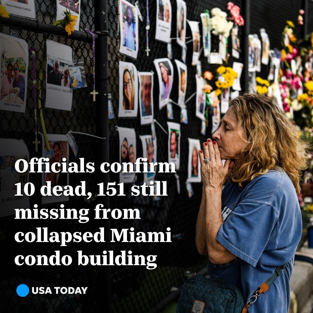 The death toll from the collapse rose to 10 after first responders pulled an additional body from the site on Monday, said Miami-Dade County Mayor Daniella Levine Cava. Four were pulled from the rubble Sunday.