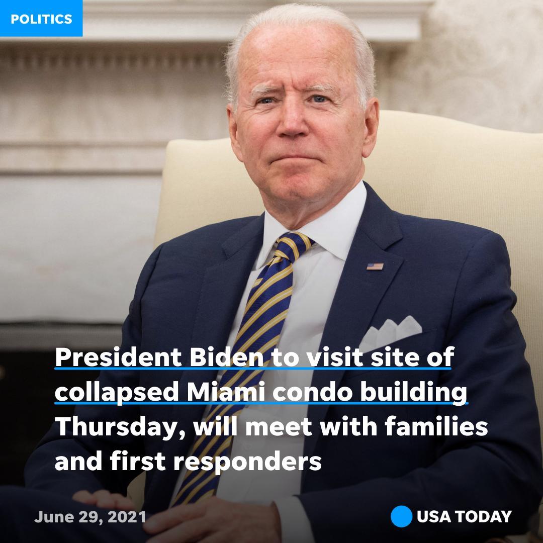 After the residence pancaked last Thursday, the White House had said Biden was waiting to travel until his visit wouldn't interfere with rescue attempts. Eleven people are confirmed dead.