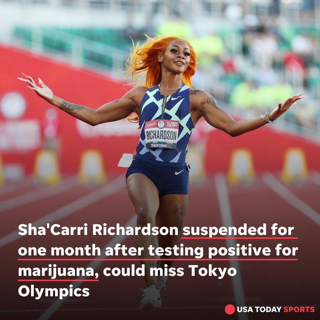 The positive test result invalidates Richardson's performance at the U.S. Olympic trials in Eugene, Oregon, where she won the women's 100-meter dash, and will prevent the 21-year-old from competing in her signature event at the Tokyo Olympics later this month.